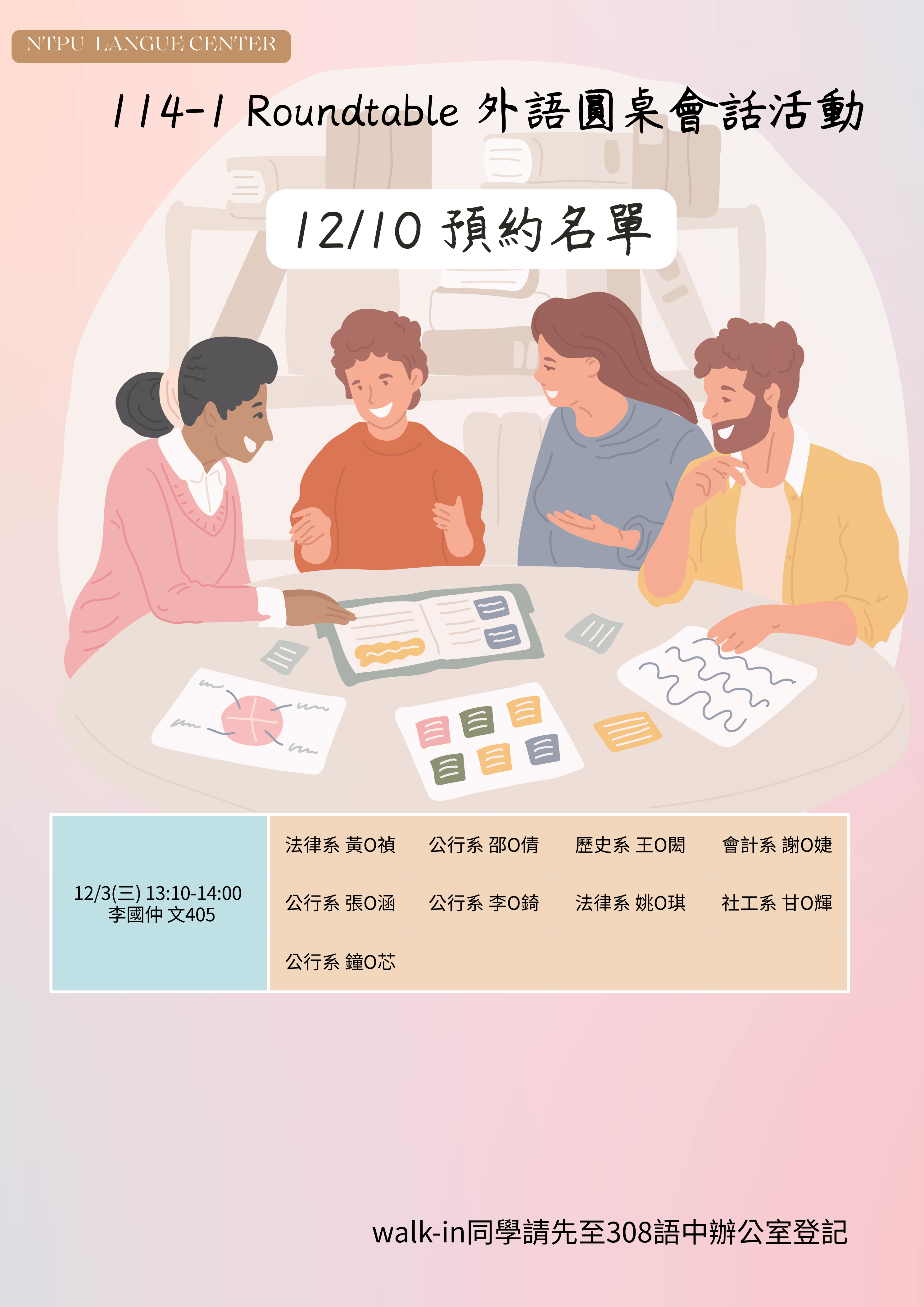 時間: 11/24 ( Mon. ) 12:10-13:00
